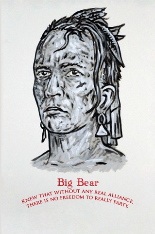 Chief Big Bear (called "Mistahimaskwa" by his people) was born at Jackfish Lake, Saskatchewan the first son of the chief of a small, mixed band of Cree and Ojibwa. By 1874, he was the head of ninety-five lodges and a man of considerable influence. When the Canadian government presented Treaty #6, yet another manipulative unfair arrangement, Big Bear refused to sign. He believed that his people would lose their lifestyle and that they would be condemned to a life of perpetual poverty.