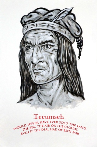 Tecumseh, the famed Shawnee chief, leader of a First Nations confederacy, military leader in the war of 1812. Tecumseh's parents were Shawnees who lived among the Creek in what is now Alabama and Georgia. The Shawnee were a fragmented wandering people who spoke Algonquian. They had been dislodged from Ohio in the late 17th century by the Iroquois. In 1759 Tecumseh's parents moved north as part of an attempt to reunite the tribe on the Ohio River. The Shawnee believed that they were the Great Spirit's special people, that He had given them a portion of His heart. Tecumseh's father Pukeshinwau was a very notable and powerful Shawnee chief.